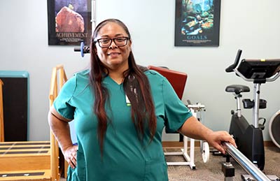 “I like that it’s peaceful out here. If we need help, they know we will ask for help, but they don’t micro-manage us and trust us to get the job done. With our physical therapy office, I enjoy the people I work with. Our physical therapy assistant has been here for about 15 years. We’re a small group; we’re a small clinic, but I like that and I like the people I work with. I also enjoy the patients. Most of them are really friendly and funny. I like talking to them and helping them.”