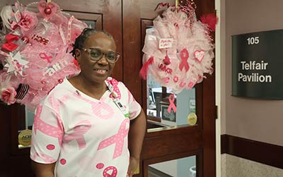 Meet Pamela Cummings, diagnostic breast patient navigator for the Telfair Pavilion. Pamela has worked for St. Joseph’s/Candler for 39 years in a variety of departments including med-surg at Candler Hospital, Georgia Infirmary, Home Health and GI. She has been at Telfair Pavilion since May and her responsibilities include making sure patients who need a biopsy get scheduled and educated on the biopsy process. She also makes sure the pathology results get to each patient’s referring physician, and if further referrals are needed, Pamela will assist with those. She also serves as a back-up nurse to get patients ready for their procedure.