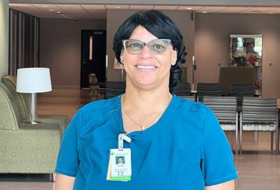 “I’m a giver, and I love to see people smile. Even if it doesn’t have anything to do with my job, I just like to give. We support one another here, and I want to be that co-worker that others can talk to, smile with and have a piece of candy with. It’s a very caring environment and a good place to work. I have a great management team that is very nice, accommodating and understanding. The nurses are great to work with too.”