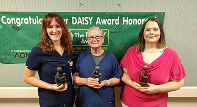 Three of a kind! Congratulations to our latest DAISY Award winners: Tammie Curtis, Maggie McKinney and Melissa Michael. All three nurses work in the Center for Digestive Diseases at Candler Hospital and they were all nominated by one grateful patient, who wrote: