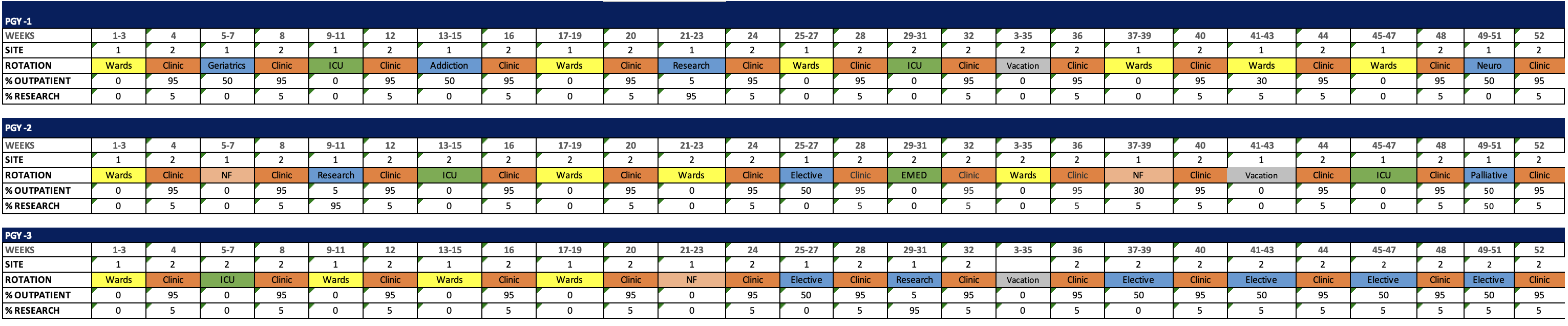 PGY-1, -2, and -3 Block Schedules