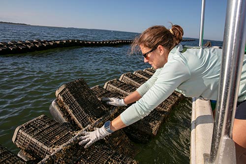 “We take students out to the farm and to our nursery, we visit classrooms, and we partner with teachers to help incorporate this real-world experience into their curriculum,” Solomon says. “There is actually a lot of math and science involved in oyster farming.”