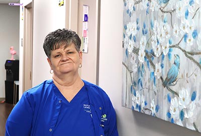 “In Pembroke, the setting is intimate, and we really get to know the patients and families really well. That’s something I pride myself on. I want to make sure I make a positive impact on their lives during their journey with us. I like to make sure we take care of the patients very well, even if it’s getting them a cup of coffee or hot tea if they are cold. I just love loving on the patients. It makes my day.”